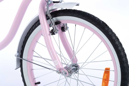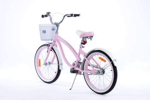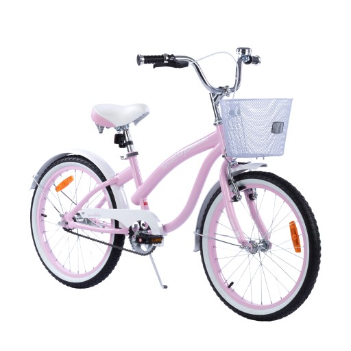 Rowerek dziecięcy typu Cruiser z pompowanymi 20calowymi kołami. Posiada on stalową ramę, solidne i dokładne wykonanie. Dodatkowo w wyposażeniu znajduje się koszyk, gumowe rączki,dzwonek.Dodatkowe odblaski, oraz brak tępych krawędzi i osłona łańcucha powodują, że rowerek jest bezpieczny dla dziecka jak i widoczny dla otoczenia.