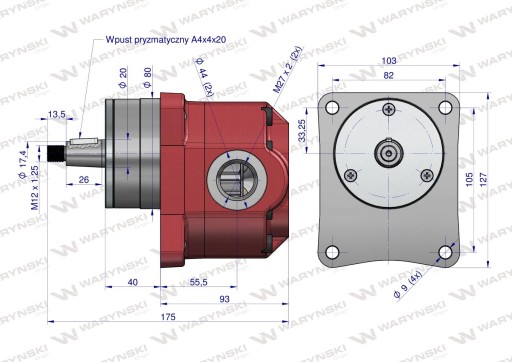 Pompa hydrauliczna zębata do Bizon Z-056, Z-058 nowy typ PZS-KP2-25 (obroty lewe) 16Mpa w korpusie żeliwnym Waryński. Wydajność pompy hydraulicznej 28 dm3/min przy 1500 obr/min (30 dm3/min przy 1600 obr/min, 31 dm3/min przy 1650 obr/min). Pompy hydrauliczne Waryński dzięki niewielkim, kompaktowym wymiarom, oraz zwartej i wytrzymałej konstrukcji znajdują szerokie zastosowanie w wielu gałęziach przemysłu, rolnictwie, hydraulice mobilnej. Nasze pompy są dodatkowo wzmocnione żeliwnymi pokrywami - gwarantuje to długą i bezawaryjną eksploatację.