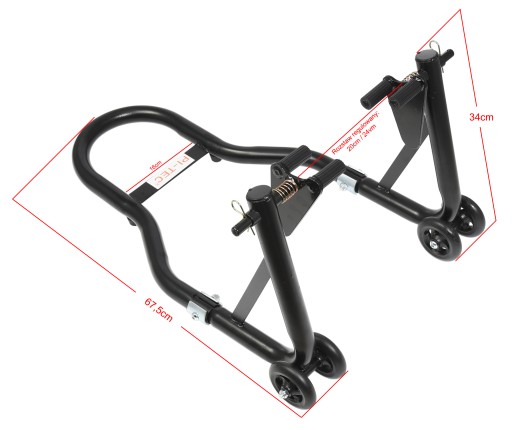 - idealny do podstawowych czynności serwisowych, takich jak obsługa serwisowa klocków hamulcowych, opony, czyszczenia felgi, zimowania motocykla