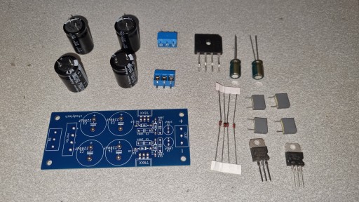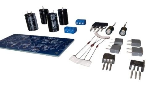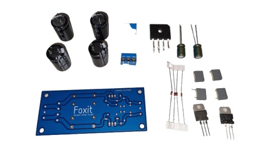 Zestaw do samodzielnego montażu. W komplecie wszystko by osiągnąć świetny gładki prąd do zasilania choć by modułu audio lub innych urządzeń wymagających stabilnego gładkiego zasilania.