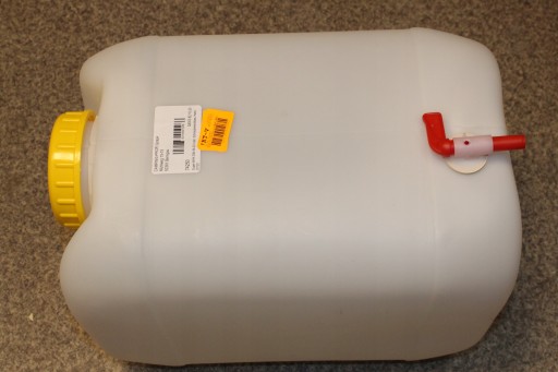 - Kanister z szeroką szyjką ze zintegrowanym uchwytem do przenoszenia, zakrętką DIN 96 i kurkiem spustowym.Specyfikacja techniczna: