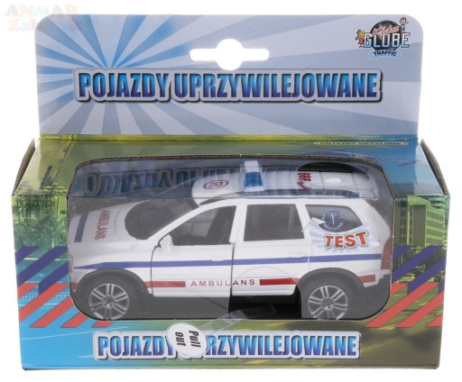 Autko Pogotowie posiada otwierane drzwi, napęd pull-back, a po naciśnięciu autka usłyszymy dźwięki syreny oraz zaświecą się górne światła.