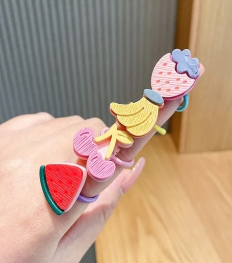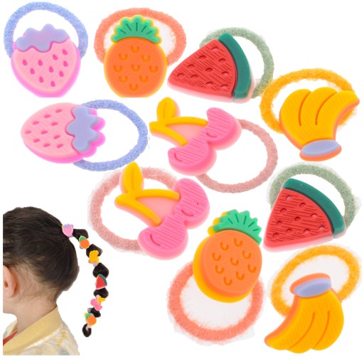 Zestaw ozdobnych cienkich gumeczek do włosów dla dziewczynki w pięknych pastelowych kolorach z uroczymi aplikacjami wykonanymi z tworzywa sztucznego.