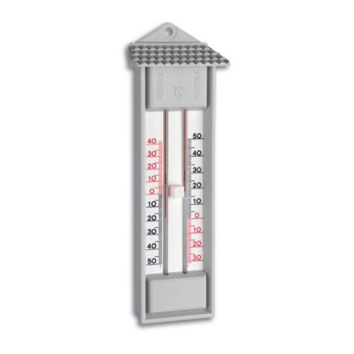 Termometr zewnętrzny TFA 10.3014.14 cieczowy ekstremalny min / max. Instrument służy do pomiaru temperatury maksymalnej i minimalnej za zadany okres pomiędzy jego ręcznym wyzerowaniem. Termometr wykonany jest z tworzywa sztucznego i przeznaczony jest do zastosowań amatorsko - hobbystycznych. Instrument może być używany zarówno wewnątrz jak i na zewnątrz budynku. Termometr nie zawiera rtęci.