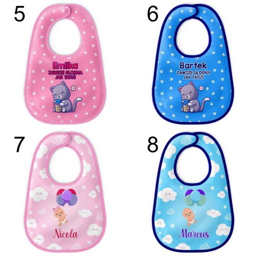 Lekki i wodoodporny śliniaczek dla dzieci, idealny zarówno dla dziewczynek, jak i dla chłopców. Możliwość personalizacji nadrukiem sprawia, że jest on wyjątkowy, a wodoodporność gwarantuje, że dziecko pozostanie suche.