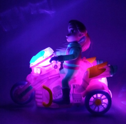 Ta magiczna księżniczka daję pokaz o jakim marzy dziecko obraca się kręci porusza się na motorze który świeci i gra .