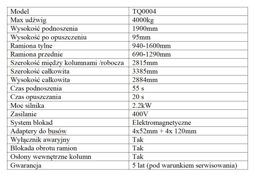 PODNOŚNIK DWUKOLUMNOWY AUTOMATYCZNY 4000kg.