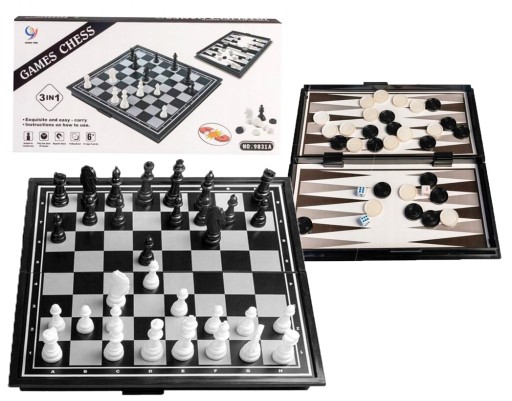 Bardzo ładne, precyzyjnie wykonane, wysokiej jakości 3 w 1: szachy magnetyczne, warcaby i tryktrak