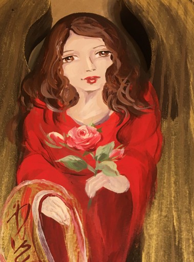 Anioł tego domu z różą czerwony