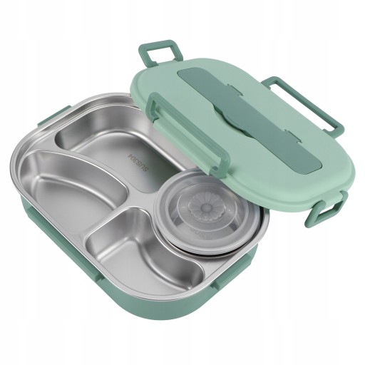 3. Pudełko na lunch z 4 kratkami, posortowane i umieszczone, nie boi się zapachów, zintegrowane formowanie, łatwe i wygodne w czyszczeniu.