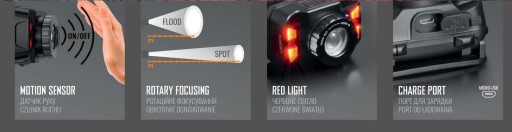 Latarka czołowa LED 5W ZOOM IP65 czujnik ruchu