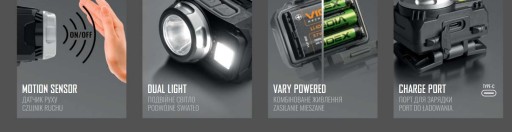 Latarka czołowa LED czujnik ruchu 5W + COB IP65