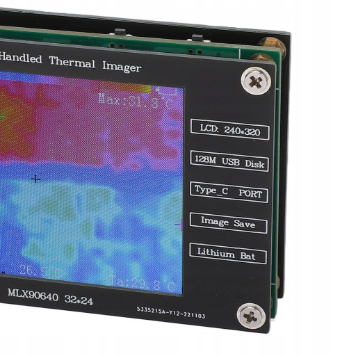 - Rozdzielczość sprzętowa: matryca dalekiej podczerwieni 32x24 piksele