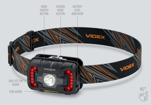 ✔ przycisk czujnika pomaga włączyć latarkę i sterować jej trybami za pomocą gestów dłoni