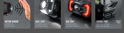Latarka czołowa LED 5W + COB IP65 czujnik ruchu