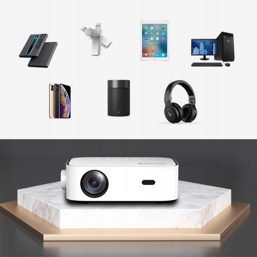 Dzięki komunikacji WIFI i wsparciu Airplay / Miracast będziesz mógł bezprzewodowo udostępnić ekran swojego telefonu na duży ekran projekcyjny. Tak małe urządzanie potrafi wyświetlić obraz o wielkości 224".