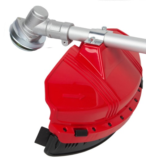 Osłona do kosy spalinowej chroniąca ciało przed trawą oraz kamieniami mogącymi spowodować zagrożenie.