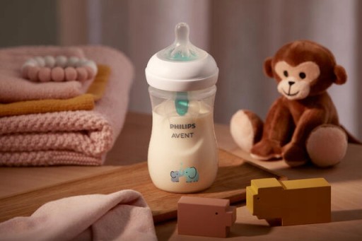 Szeroki, miękki i elastyczny smoczek naśladuje kształtem i fakturą kobiecą pierś, co pozwala dziecku przyssać się i spokojnie pić. Wentyl AirFree utrzymuje powietrze z dala od brzuszka dziecka. Ułatwia karmienie w pozycji pionowej, wypełniając smoczek mlekiem, a nie powietrzem. Ogranicza to ilość połykanego powietrza i dzięki temu zmniejsza kolkę i dyskomfort.