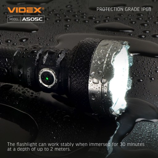 ✔ latarka ma pełną ochronę przed kurzem i może wytrzymać krótkotrwałe zanurzenie pod wodą na głębokość 2 metrów