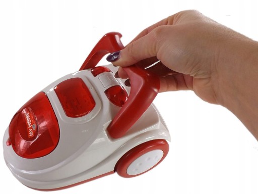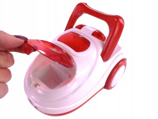 ➡ Odkurzacz, po uruchomieniu wciąga sztuczne śmieci załączone do zestawy i wydaje dźwięki jak prawdziwy odkurzacz.