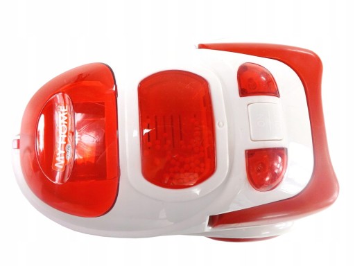 - Jednocześnie z dźwiękiem odkurzania, sztuczne śmieci znajdujące się w przezroczystej komorze na górze odkurzacza, mieszają się za pomocą wiatru, czemu towarzyszy światło.