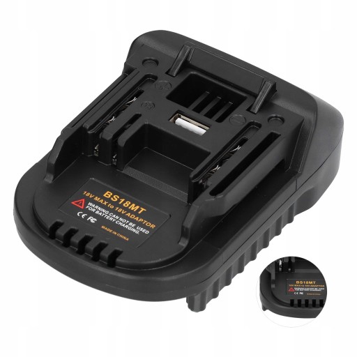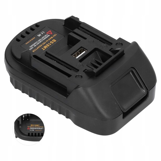 Opis funkcji: Czarny konwerter BS18MT, odpowiedni do baterii litowej BOSCH 18V BAT609 BAT610+adapter BS18MT = zamiennik dla baterii MAKITA 18V BL1830 BL1840 BL1850 BL1860 BL1830B BL1840B, może być używany z narzędziami MAKITA 18V