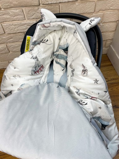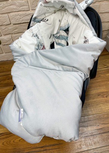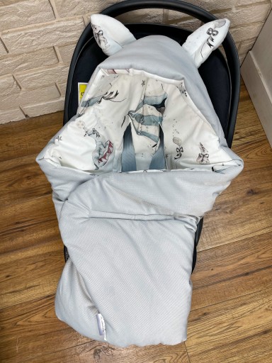 Śpiworek idealnie sprawdzi się na podczas jazdy samochodem oraz wózkiem. Kapturek dodatkowo chroni główkę przed wiatrem.