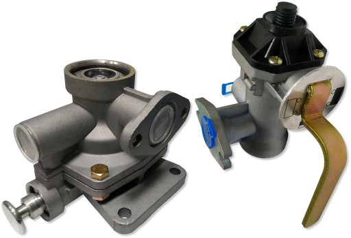 Następnie podłączając ponownie przyczepę do pojazdu ciągnącego, zawór ten przestawia się w położenie, które pozwoli nam zasilić go powietrzem oraz sterować hamulcami tej przyczepy przez pojazd ciągnący.