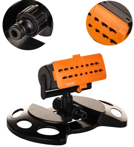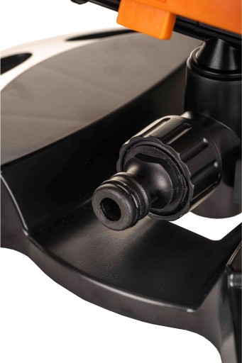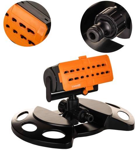 Zraszacz wahadłowy oscylacyjny z 16 otworami nawadniającymi. Zapewnia równomierne i delikatne nawadnianie. Reszta konstrukcji wykonana z odpornego na wstrząsy plastiku.
