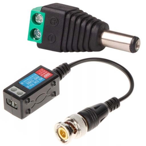 ZESTAW DO PODŁĄCZENIA KAMERY CCTV: Wtyk Zasilania DC 2,1/5,5 + Konwerter wideo BNC na skrętkę UTP
