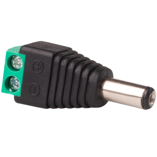 - Szybkozłącze na standardowy wtyk zasilania DC 2,1/5,5 mm do kamer CCTV.