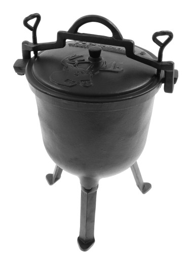 Kociołek może stać bezpośrednio w ognisku lub być zawieszony nad ogniskiem.
