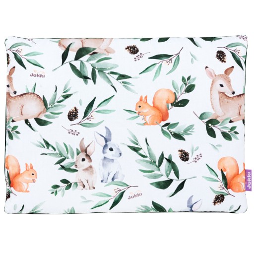 Poduszka o wymiarach 25 x 30 cm wypełniona antyalergiczna silikonową włókniną. Poduszka jest płaska, ma około 2cm wysokości, stworzona specjalnie dla niemowląt.