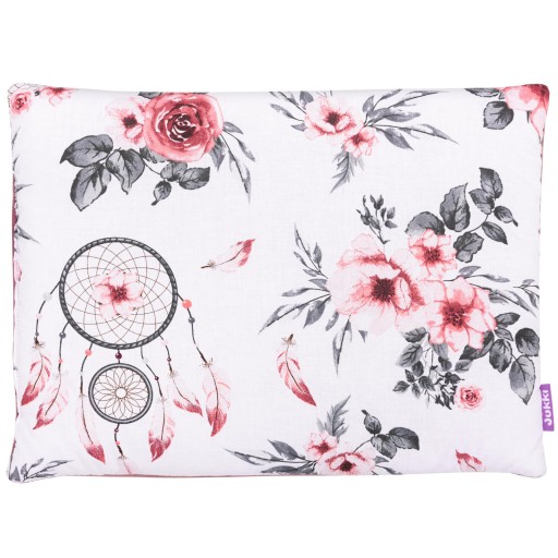Poduszka o wymiarach 25 x 30 cm wypełniona antyalergiczna silikonową włókniną. Poduszka jest płaska, ma około 2cm wysokości, stworzona specjalnie dla niemowląt.
