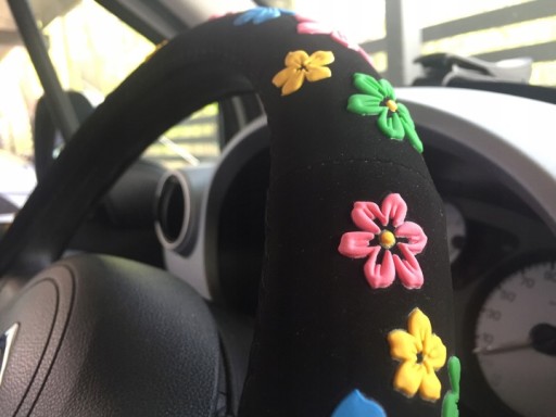 Pokrowiec na kierownicę wzór KWIATKI, wykonany z wysokiej jakości materiałów (zamsz antypoślizgowy)