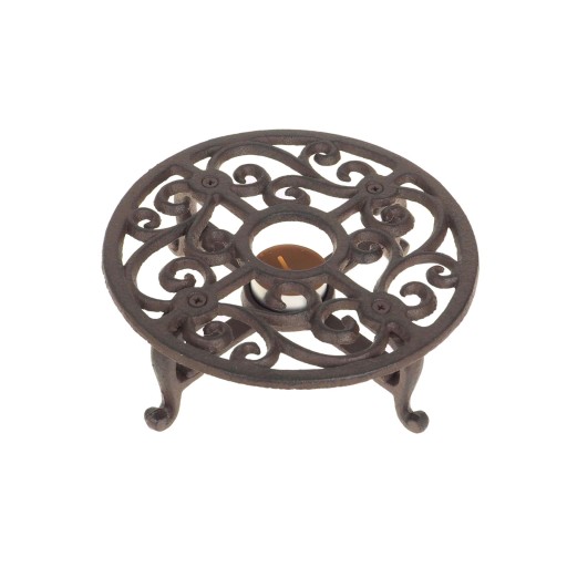 Ten ozdobny żeliwny podgrzewacz jest odlewany ręcznie zgodnie z wielowiekową tradycją i kunsztem.