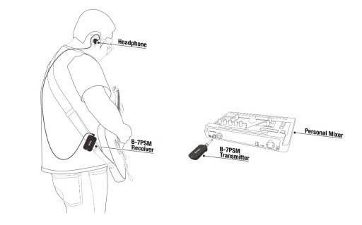 Możesz regulować głośność RX w krokach co 0,5 dB za pomocą przycisków + i –. Maksymalna głośność to 0dB, a minimalna to -64dB. Przytrzymanie przycisku + lub – może szybko zwiększyć lub zmniejszyć głośność. B-7PSM oferuje transmisję dźwięku STEREO, więc idealnie nadaje się do pracy z profesjonalnymi mikserami osobistymi, aby panoramować utwory tak, jak chcesz na scenie lub w studio podczas prób i występów na żywo. B-7PSM oferuje najwyższą jakość dźwięku z zakresem dynamiki 92 dBA i pasmem przenoszenia 20 ~ 19 kHz.