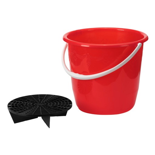 Wiadro i filtr na dnie są wykonane z tworzywa. Wiadro jest wyposażone w uchwyt do przenoszenia i mieści 15 litrów.