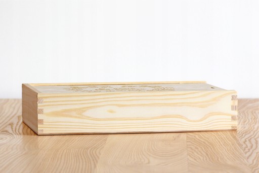 - Pudełko z drewna sosnowego o wymiarach zewnętrznych 32x21x6,5 cm