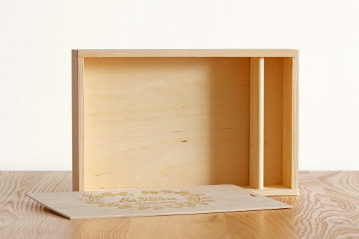 DREWNIANE PUDEŁKO NA ZDJĘCIA Z PRZEGRODĄ NA PENDRIVE:
