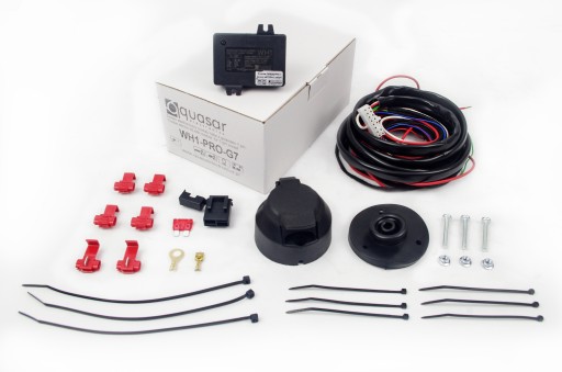 WH1-PRO jest kompletnym zestawem z obsługi wszystkich podstawowych świateł na przyczepie lekkiej (do 750 kg). Współpracuje z oświetleniem żarówkowych jak i LED i co więcej poprawnie działają ze sterowaniem oświetlenia typu "PWM" w samochodzie (czyli gdy jednym przewodem jest sygnalizacja dla dwóch świateł np. "stop" i "pozycja").