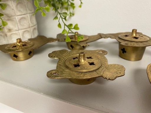 Średniej wielkości lampka oliwna. Wykonana z mosiądzu