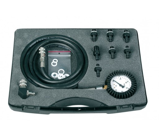 Urządzenie przeznaczone jest do pomiaru ciśnienia oleju w automatycznych skrzyniach biegów. Pomiaru dokonuje się przez połączenie manometru próbnika za pomocą końcówek pomiarowych o odpowiednim rozmiarze gwintu wkręcanych w otwór kontrolny skrzyni biegów (w kpl. 7 końcówek pomiarowych).
