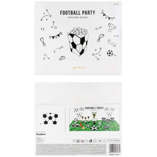 Pudełka na popcorn "Piłka Nożna", białe, PartyDeco, 6szt