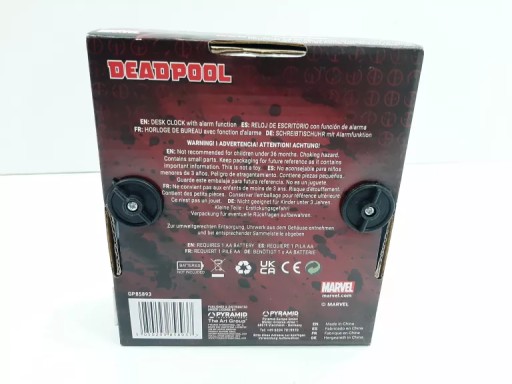 Rewelacyjny zegar biurkowy dla fana marki Deadpool. Posiada cichy i precyzyjny mechanizm kwarcowy. Wyposażony jest w wygodne i proste w użyciu pokrętło, które pozwoli w łatwy sposób nastawić aktualny czas. Zegarek posiada funckję budzika.