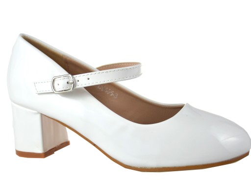 Lakier PANTOFELKI WYSOKI Obcas KOMUNIJNE BIAŁE