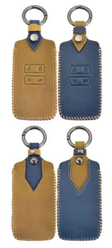 W ofercie nowe etui, wysokiej jakości ręcznie wykonany pokrowiec z odpornej na uszkodzenia skóry CRAZY HORSE w kolorze granatowym do modeli karty klucza smart keyless DACIA wraz z grawerem modelu na odwrocie.