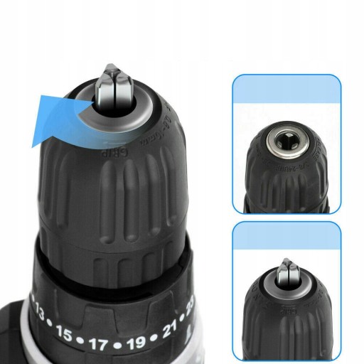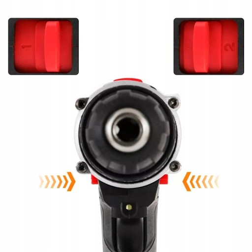 - - 2 regulowane biegi, używane do wiercenia udarowego w drewnie, metalu, murze i innych.