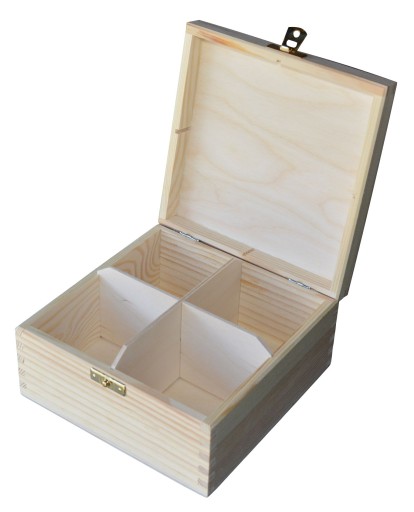 CUDOWNE, DREWNIANE PUDEŁKO NA HERBATĘ Z 4 PRZEGRÓDKAMI!