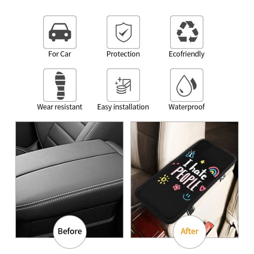 Materiał: wykonany z miękkiego neoprenu + elastyczna gumkaWydajność produktu: Ta mata podłokietnika ma wiele właściwości, takich jak wodoodporne i antypoślizgowe dno, odporne na zużycie, trwałe, oddychające i elastyczne, praktyczne i stylowe. Chroni konsolę środkową podłokietnika przed kurzem i zadrapaniami, pokrywa stare wyblakłe podłokietniki i zdobi pojazd. Jest nie tylko wystarczająco szeroki, aby pokryć całą skrzynię podłokietnika, ale jest również wystarczająco gruby, że pozwala na rozluźnienie łokci, ramion, podłokietników i nadgarstków. Odciąża łokcie podczas jazdy i zapobiega poceniu się rąk na konsoli środkowej. Dając Ci całodzienne doświadczenie komfortu. Chroni również Twój pojazd przed pazurami zwierząt domowych, brudem i lepkimi palcami. Ta nakładka na podłokietnik ma podwójnie elastyczny tył i antypoślizgową teksturę, która utrzymuje ją stabilnie na konsoli środkowej. Dlatego nie potrzeba żadnych innych narzędzi i można ją łatwo przymocować do konsoli środkowej pojazdu. Przy zakupie należy sprawdzić, czy jest on kompatybilny z konfiguracją poduszek podłokietnika środkowego. Tylna guma jest bardzo elastyczna i rozciągliwa i nie zmieni funkcji otwierania i zamykania podłokietnika.